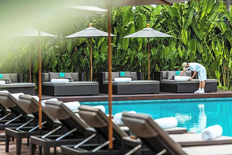 Luxury suite features a private hall decorated with antique teak-wood carving, Chinese horseshoe chairs and temple bells. It comes with an open-plan living area which features unique furnishings as Helen Yardley rugs and Patricia Urquilo sofas.